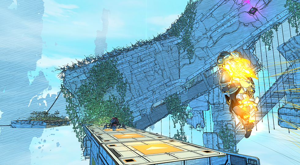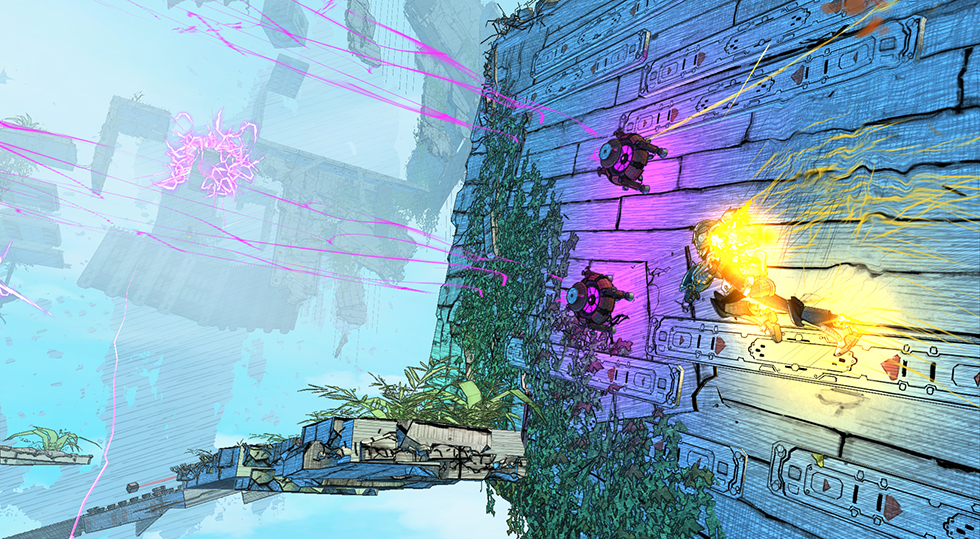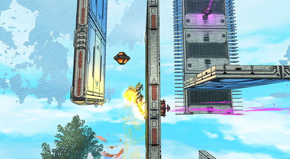 Cloudbuilt is a new title from the creative minds at Swedish Indie-developer Coilworks; Cloudbuilt seamlessly blends the arcade-shooter aspects of the Mega Man series with the parkour-based freedom of Mirror’s Edge, and wraps them together with a unique sketchbook-art-style and pulsing retro-inspired soundtrack. Gameplay revolves around traversing across floating structures, using your jet-pack to maneuver between- and scale- walls to find a route towards the end of the level; enemies are littered across the stage for players to either destroy with their integrated blaster, or avoid by using quick-wits and the terrain to their advantage. Cloudbuilt will feature over 20 open-ended levels, branching-level paths, four alternate endings, and an “organic learning curve” that adapts to the player as he/she discovers new ways to use the character’s abilities: