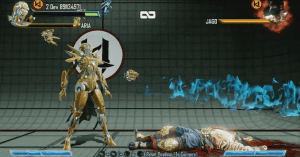 Friday evening, KI Season Two‘s final character was given a full on-stage presentation by Team Spooky. Filling the 18th slot on the “Select Your Fighter” screen is “ARIA”, the cybernetic leader of Ultratech Corp. ARIA herself is an AI uploaded into three separate drones; her body is constructed from nanobots emitted from each drone. Players will immediately discover that ARIA has three separate life-bars, one for each drone; her drones can be summoned individually for assist attacks, or allow ARIA to switch between combat “stances”.
