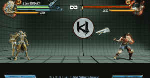 By default, ARIA will begin the match in “Booster” mode, indicated by the wings on her back. In this stance, ARIA is granted with the ability to levitate and hover around the stage, however Booster has the slowest walking-speed of the three modes. “Blade” mode replaces one of ARIA’s arms with a giant blade; this mode significantly increases the range of her medium-Punch (MP) and hard-Punch (HP). While in this state, ARIA can perform a “launcher” and a forward-slash with a “Dragon Punch” motion followed by a punch. (Popularized by the Street Fighter series, the DP motion is “Forward-Down-Down/Forward Diagonal”.) ARIA’s final mode, “Base” has the fastest movement speed and a chest-mounted energy cannon.