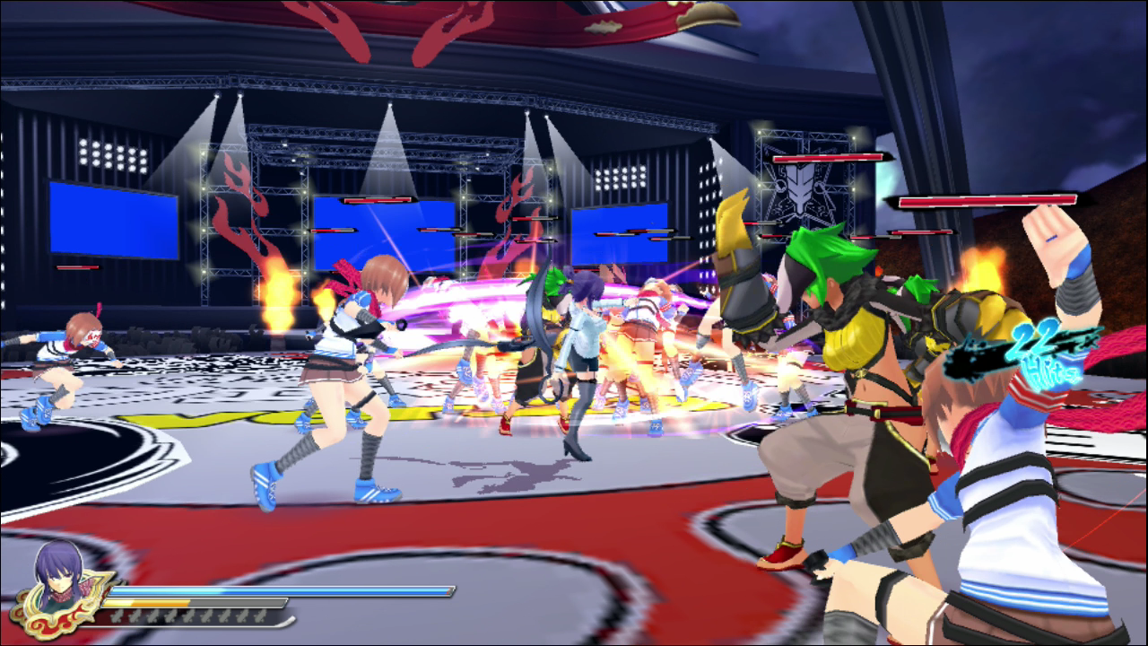 The story may have taken the back seat in Estival Versus, however the gameplay continues to evolve and expand on its frantic roots. Simplified, Senran Kagura is a traditional hack-n-slash where the player must fight their way through waves of enemies until the mission is complete. The franchise tweaks the genre to the extreme, allowing players to perform combo moves that may result in launching enemies into the air; once the player-character has reached a specific Level, she can unleash a chained “Aerial Rave” for maximum damage. Unlike the 3DS installments, players cannot perform an infinite air combo chain in Estival Versus. Apart from health, each character has an additional Ninja Arts meter and a Ninja Art Scroll stock; the meter fills with every successful attack, with a full gauge resulting in a new Ninja Arts Scroll. Once the player has a Ninja Arts Scroll, the character can transform into her Shinobi mode, resulting in higher defense and offense, and the ability to use Ninja Arts Scrolls to unleash special Ninja Arts attacks. Depending on each character’s Level, she can use 1-5 Scrolls to strike with a normal, Special, or Ultimate Ninja Arts attack, with each having different attack properties ranging between projectiles, special combos, beast summoning, and timed-invincibility. As with the lacking infinite air combos, players cannot perform Ninja Arts in the air- a feature last seen in the two 3DS games.