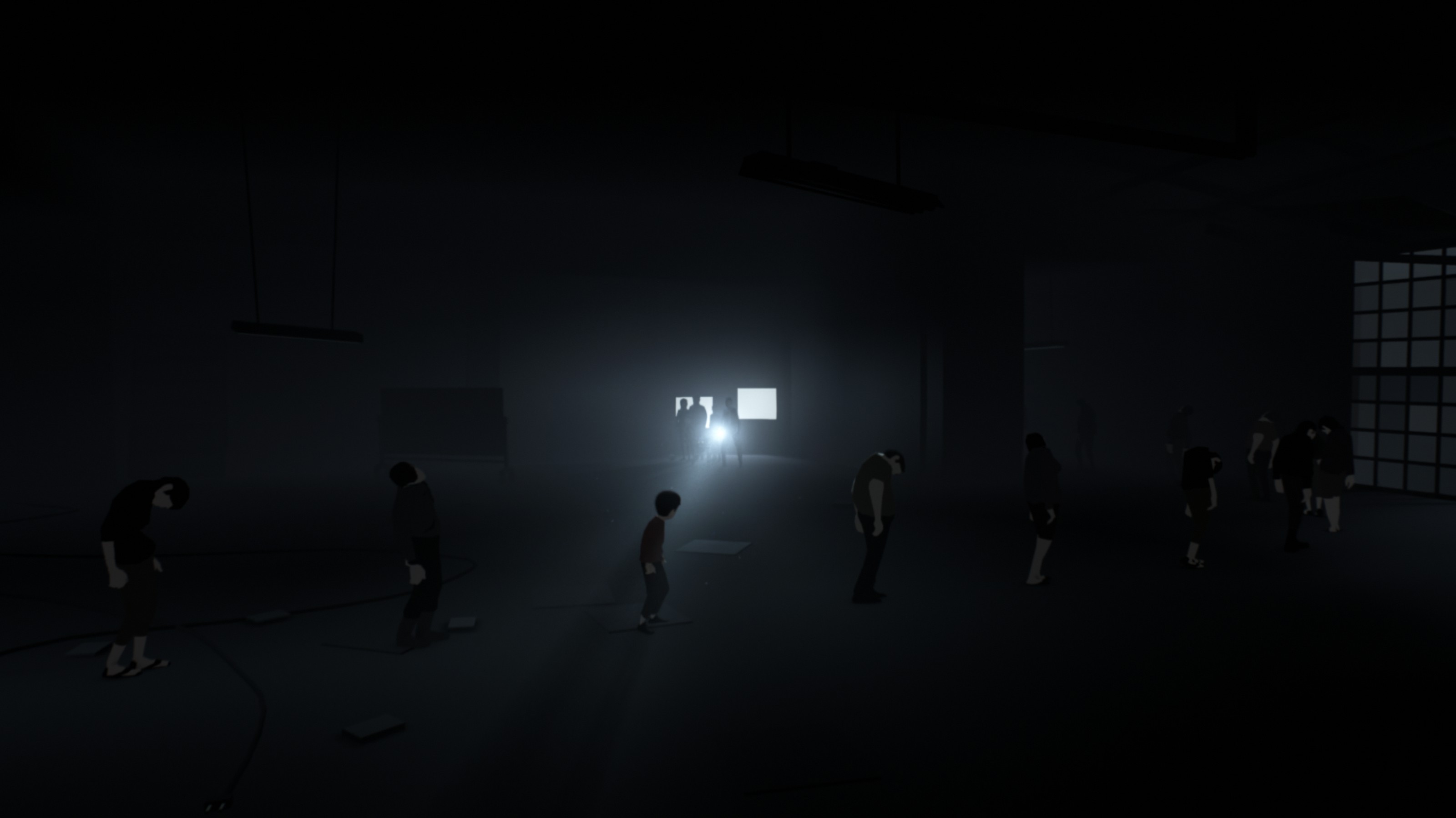 Though not necessarily a horror title, Inside is certainly an eerie- and at times unsettling- experience. The game is void of color outside of the severely monochromatic industrial setting, with the only accents being the child’s red shirt, the yellow and red glow of some electronic devices, and the occasional inviting rays of light. For being “trapped” in such a large laboratory or research facility, its internal areas have been abandoned; the only life comes from hostile test subjects and other humans. There’s an additional sense of oppression, as some humanoids are locked behind bars, or in satellite prison cells throughout the game. Truly driving in the unnerving nature of Inside‘s world, the characters all have blank faces with no eyes or mouths; the only defining features come from their hairstyles and clothing, with most of the humans wearing business attire, blue-collar uniforms, or the black clothes of the organization pulling the strings. Inside also lacks a consistent soundtrack, however ambient tunes are there to accent puzzle solutions and important gameplay revelations.
