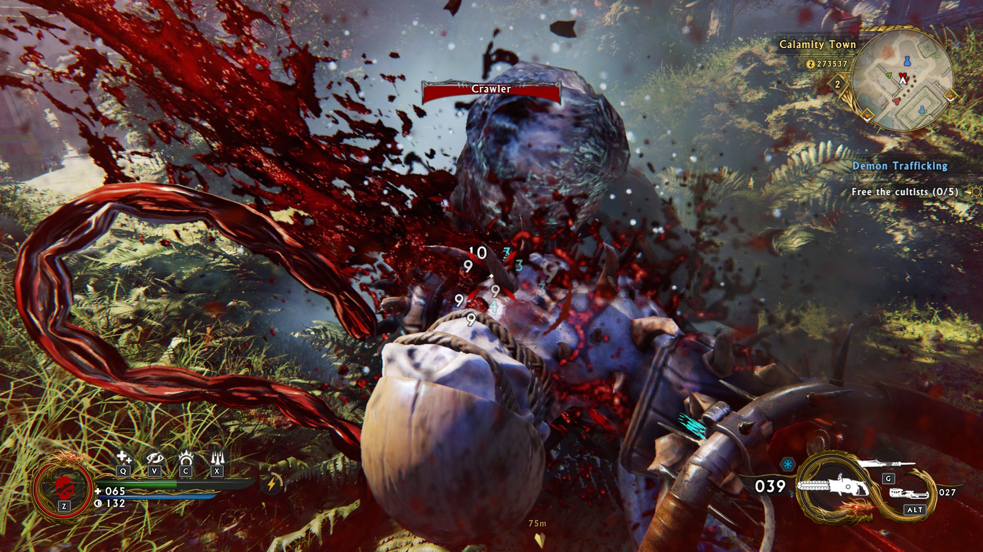 Shadow Warrior 2 is a vivid escape from the recent torrent of military shooters thanks to its bright visuals and unique- if not macabre- enemy designs. Wang and Kamiko’s adventure is mostly tied to rural villages, towns and the occasional forest, however players will also find themselves in the fluorescent digital facilities of Orochi-Zilla. This bizarre clash shines most during select outdoor missions, as mutated feudal samurai storm through the forest, funneling into a high-tech Zilla outpost. NPCs may not run rampant throughout the environments of Shadow Warrior 2, but the trees and fauna breathe life into each area with constant dynamic motion; enemies not alerted to Wang’s presence will wander aimlessly, acting in random fashion. A more lewd homage to the original game, rabbits are en masse “doing what rabbits do”, complete with animations and heart icons. Though not as apparent with lower graphical settings, enemy models have modular gore-skeletons, allowing players to dismember mutants, demons and other villains with surgical precision; an added bonus is found within the heavy chainsaw weapons; the player can manually control and dissect their foe by holding the Right mouse button.
