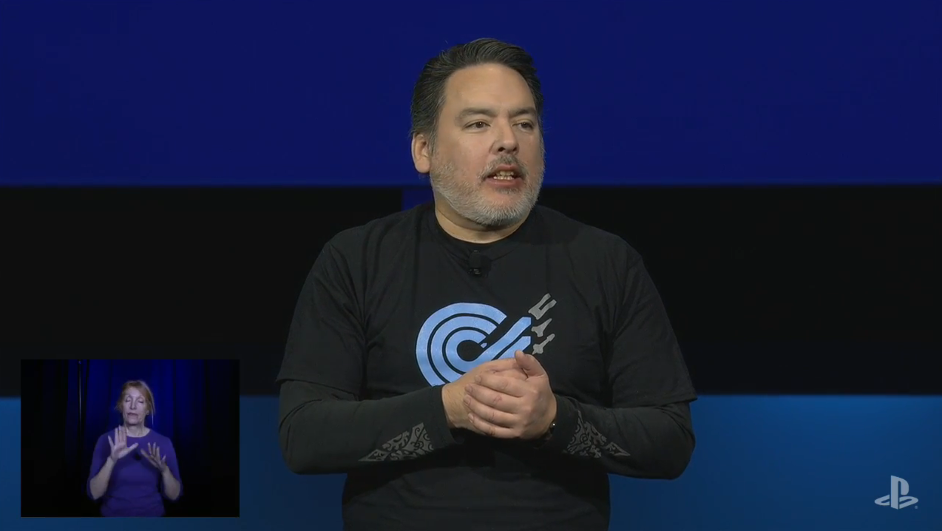Sony’s flagship light-speed racing franchise WipEout hasn’t seen a new installment since 2012’s WipEout 2048 for the PlayStation Vita. As with Phil Spencer’s Battletoads shirt, Sony’s Shawn Layden casually hinted at the franchise’s return via a black shirt with one of WipEout‘s numerous logos.