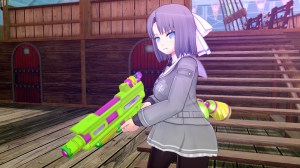 Earlier today, Peach Beach Splash publisher Marvelous released a new batch of screenshots and details regarding the PS4-exclusive team-based Senran Kagura shooter. Players will have access to five types of water-guns- Assault Rifles, Shotguns, [Balloon] Grenade Launchers, Gatling Guns and [Bottle] Rocket Launchers- each of which can be leveled-up for more powerful variations; each water gun consumes water at a different rate, which improves with weapon-level. A roster of 30 characters from the Nintendo and Sony titles, and the mobile game New Wave will be available at launch, with more coming as DLC. As with each weapon type, every character can be leveled-up to earn extra character-specific abilities. Senran Kagura‘s excessive character-customization will return, allowing each character’s clothing and hair to be custom-picked; costumes are all susceptible to real-time damage and water effects. For the screenshot enthusiasts, Peach Beach Splash will include a photo-centric Diorama Mode where characters can be manually posed within preset environments.