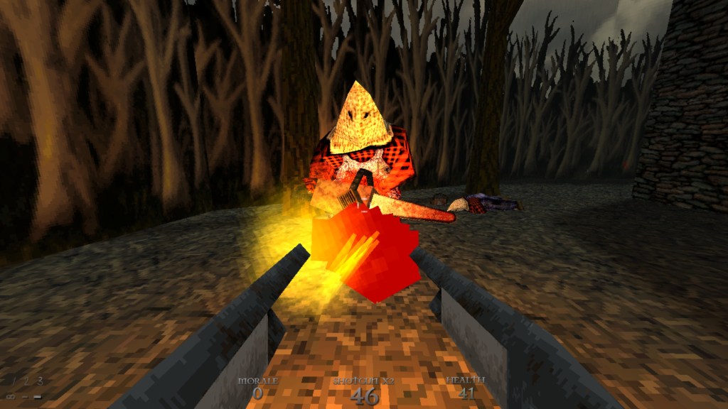 All of the iconic DOS FPS toys are present in DUSK, ranging from the Sickles and Pistol up to dual-wielded Shotguns and the Grenade Launcher. Though the game may present itself as a classically-influenced title, DUSK still possesses a few modern gameplay mechanics; players can “Right-Click” to aim down the sights of any firearm, and manually reload weapons with “R” if they desire; it’s not necessarily a “modern” tactic, but the Grenade Launcher allows for players to rocket-jump their way around each level, assuming they have enough health to prevent an untimely- if not impressive- early death. DUSK also features arena multiplayer and “Endless Mode” for players to bet their skills against nonstop waves of enemies outside the episodic campaign. Those who may not appreciate the low-texture default aesthetic also have the option of enabling smoother, “high” resolution textures and models; Andrew Hulshult’s soundtrack is here to stay however, because as 2016’s DOOM has shown, nothing is more satisfying than killing monsters and cultists to the sounds of aggressive rock.